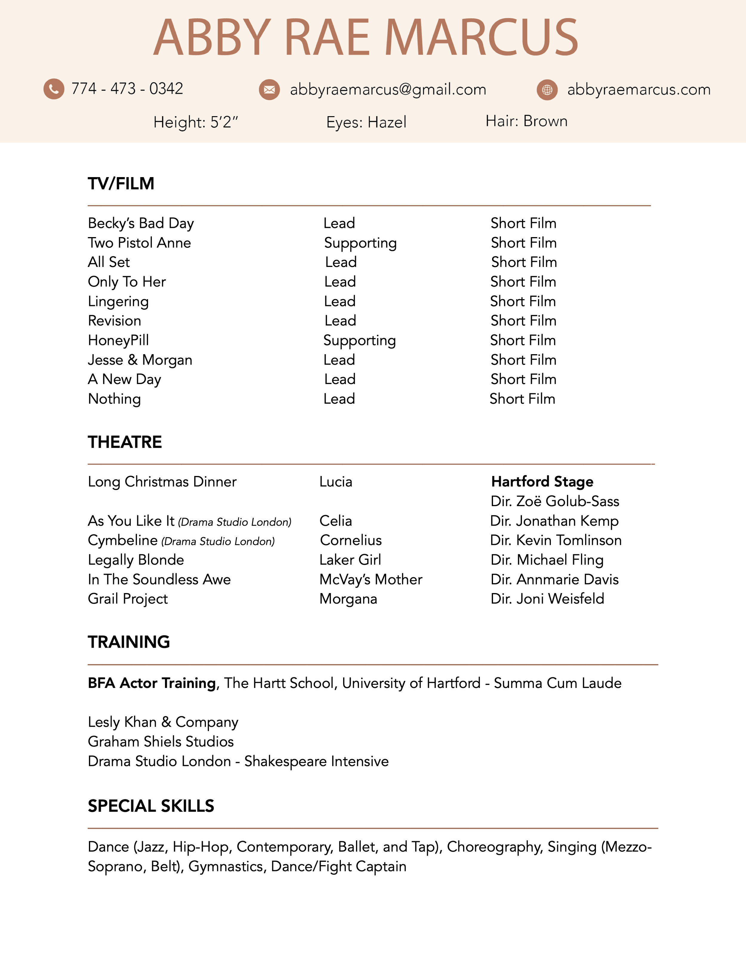 Abby currently lives in LA but grew up outside of Boston, where she also has worked on a number of TV shows and films.